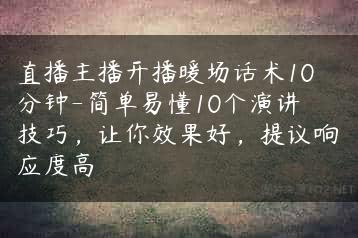 直播主播开播暖场话术10分钟-简单易懂10个演讲技巧,让你效果好,提议响应度高